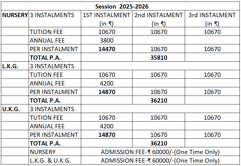 FEE STRUCTURE (Kindergarten Section)